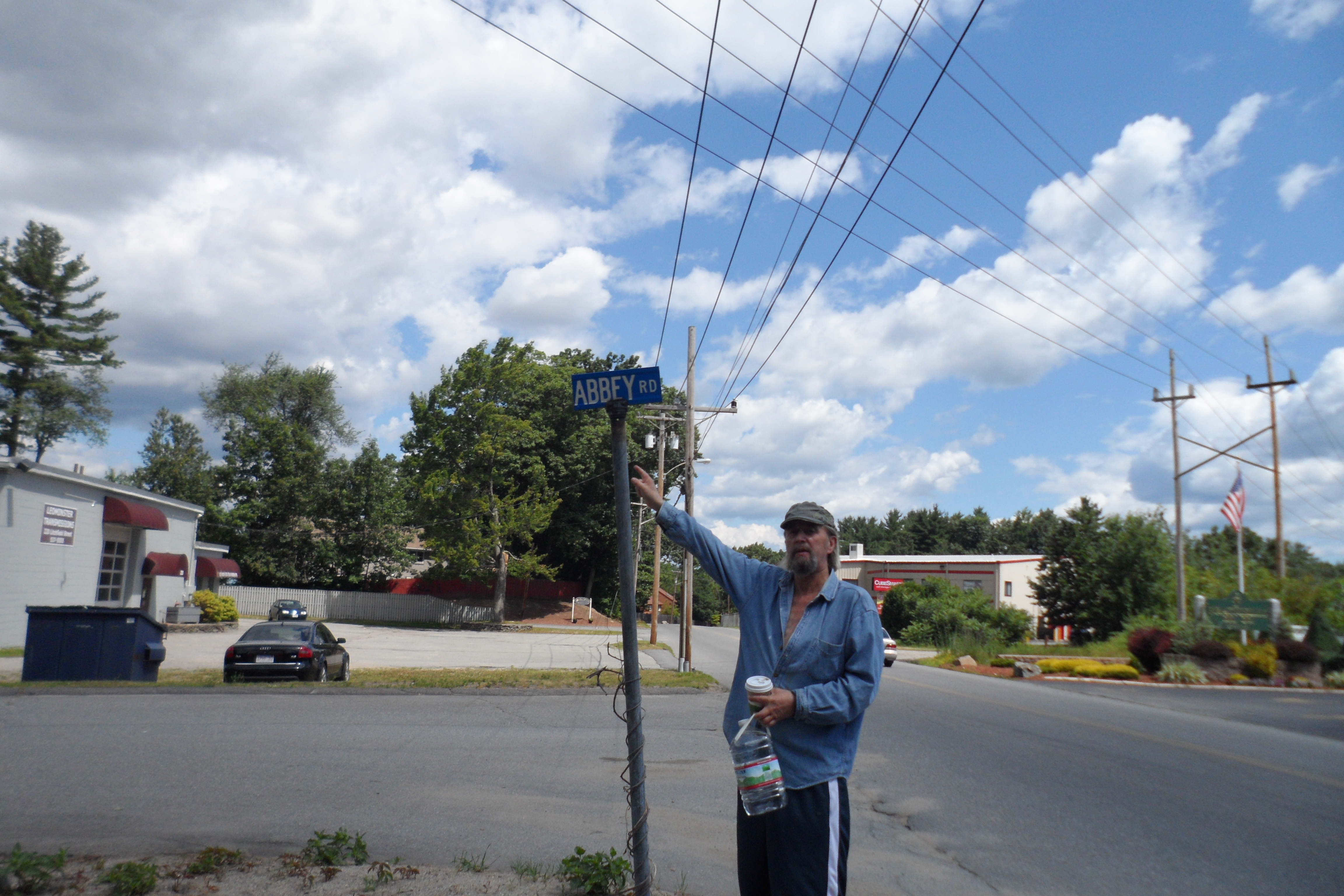 [Drunken Sailors trip of summer of 2012, pointing to Abbey Road sign, taken by my new wife Marie visiting from Antwerpen Belgium.  We got married  July 7, 2012 at Leominster City Hall by Justice of the Peace, and boy was it funny when Marie could not pronounce one of the words and Justice did all she could to hold back her laughing, which Marie and me could not stop.]